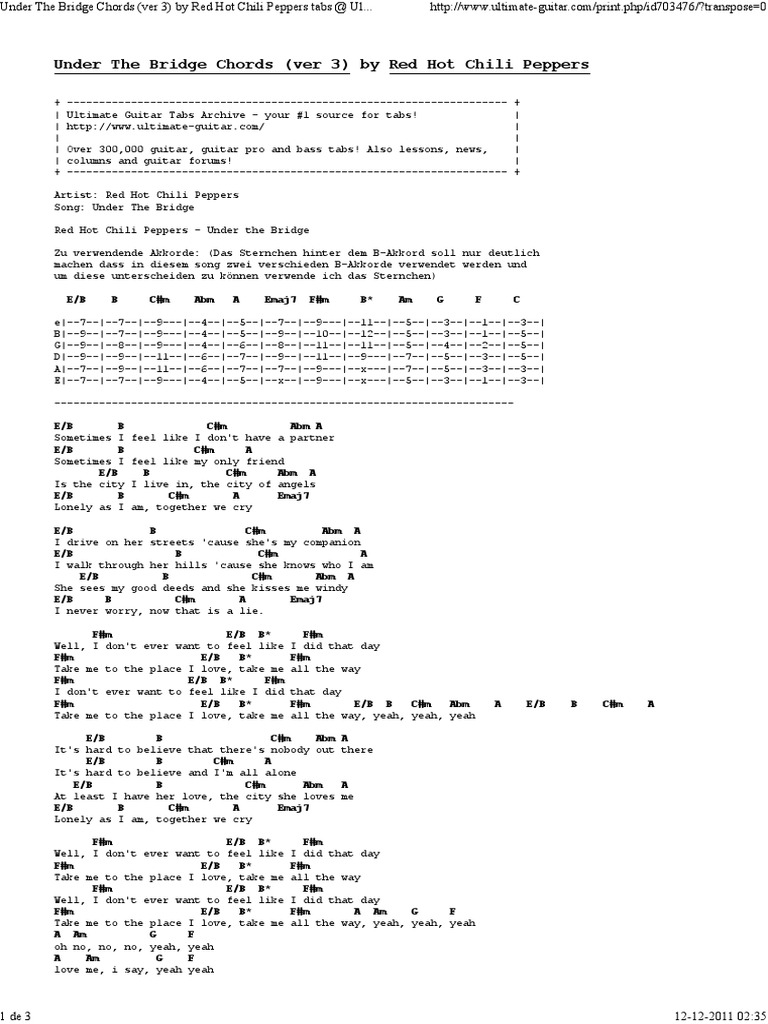 Under The Bridge Chords Capo 2